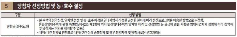 ㅇ 당첨자 선정(동호수 결정) : 전산프로그램을 통해서 100% 추첨