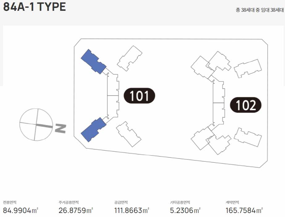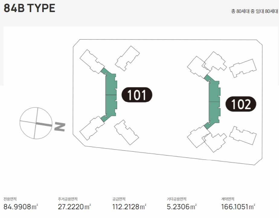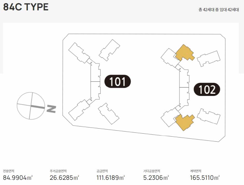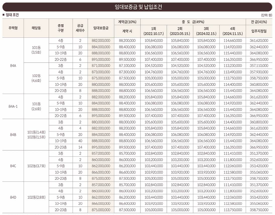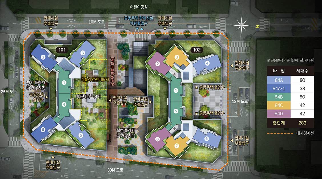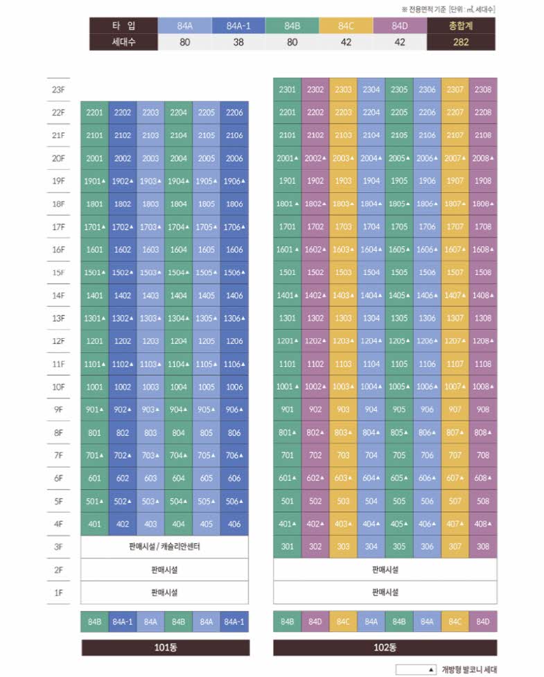 ㅇ 공급세대수 : 아파트 총 282세대(84A 80세대, 84A-1 38세대, 84B 80세대, 84C 42세대, 84D 42세대)