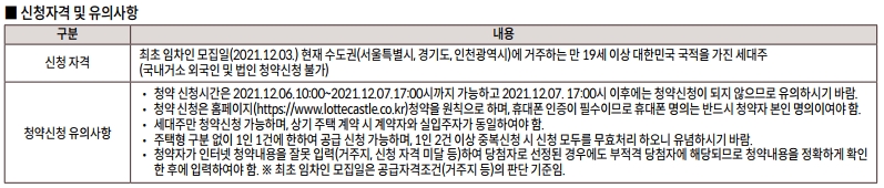 ㅇ 청약접수 : 12.06(월) 10:00 ~ 12.07일(화)17:00 총 2일간 진행