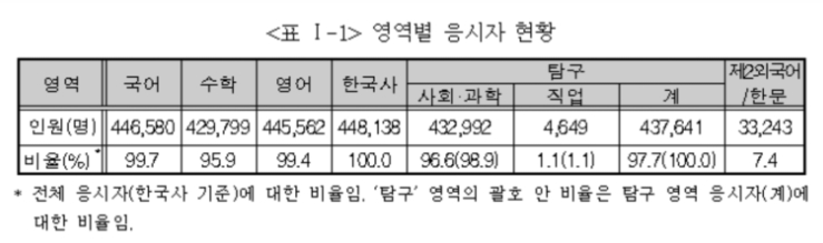 - 총인원 : 448,138명(재학생 318,693명, 졸업생과 검정과시 학격자등 129,445명)