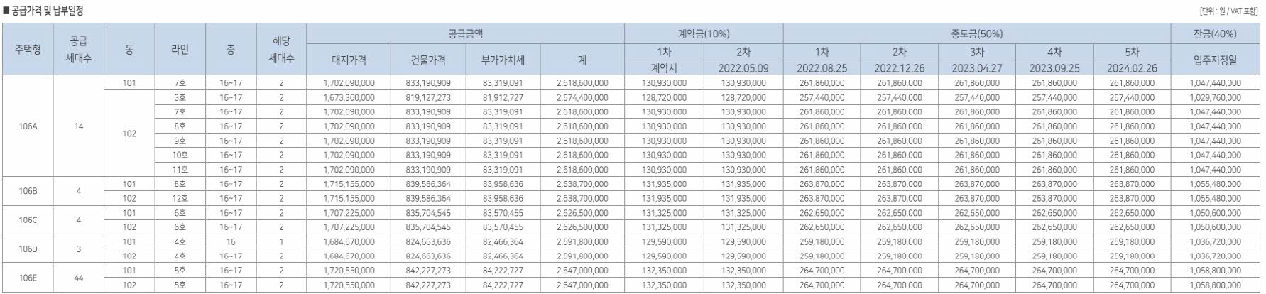 ㅇ106A타입 : 약 25.7억~26억1천만원대