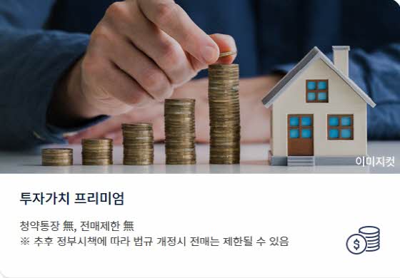 ㅇ 투자가치 프리미엄 : 청약통장 무, 전매제한 무