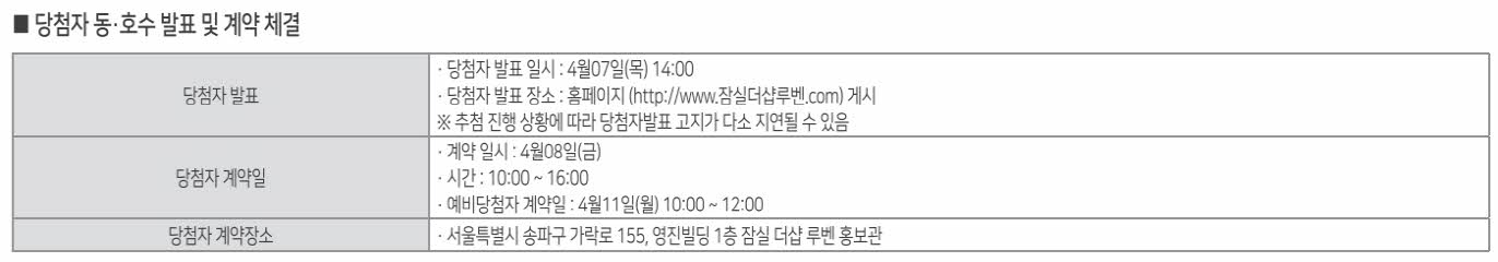 ㅇ 당첨자 발표 : 04.07(목), (당첨자 발표 조회 잠실 더샵 루벤 홈페이지 개별 조회)