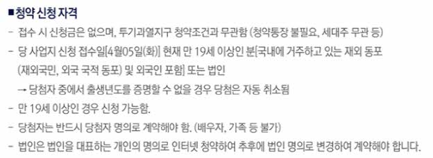 - 당첨자는 반드시 당첨자 명의로 계약해야 함