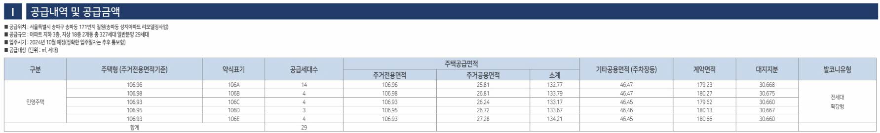 ㅇ 공급 위치 : 서울시 송파구 송파동 171번지