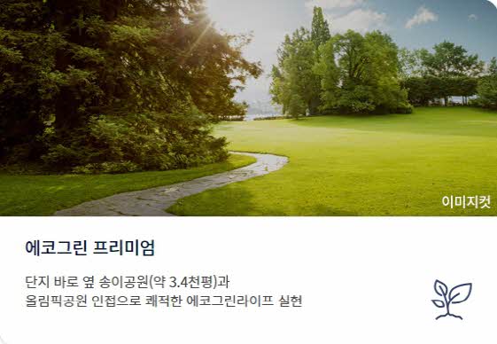 ㅇ 에코그린 프리미엄 : 단지 바로옆 송이공원과 올림픽공원 인접으로 쾌적한 에코그린라이프 실현