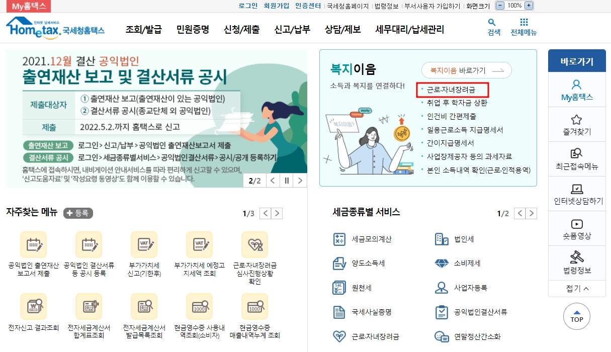 2022 근로장려금 신청자격 방법등 Q&A 안내!!