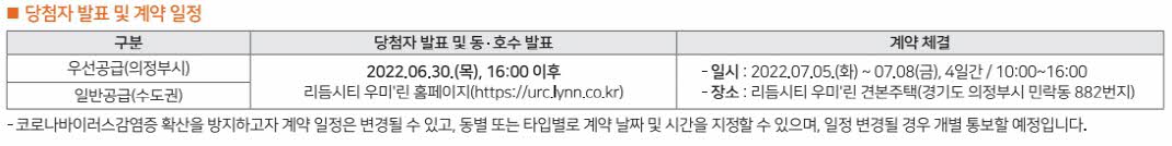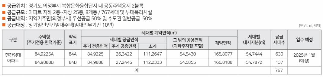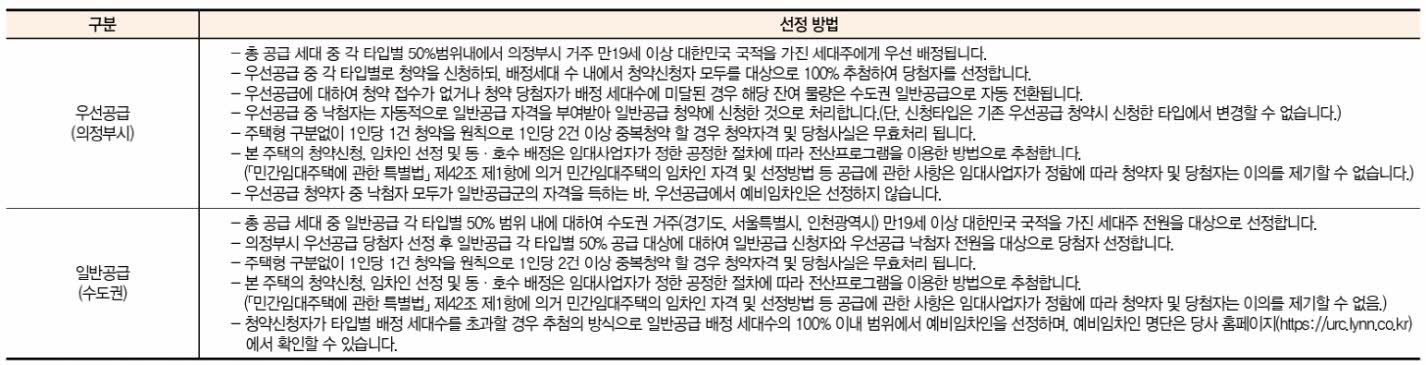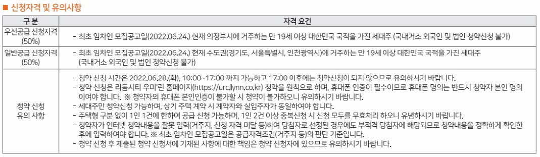 - 우선공급 : 의정부시 거주 만 19세 이상 세대주, 총세대수의 50%