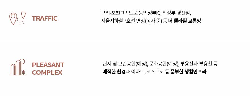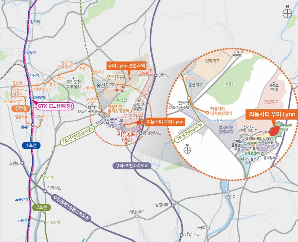 ㅇ 교통 : 구리-포천 고속도로 동의정부 IC, 의정부 경전철, 서울 지하철 7호선 연장(공사중)