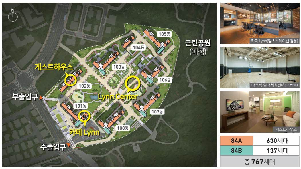 ㅇ 공급규모(총 767세대) : 84A타입 : 630세대, 84B타입 : 137세대