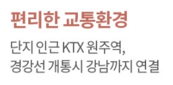 ㅇ 교통 : 단지 인근 KTX원주역, 경강선 개통 시 강남까지 연결 가능