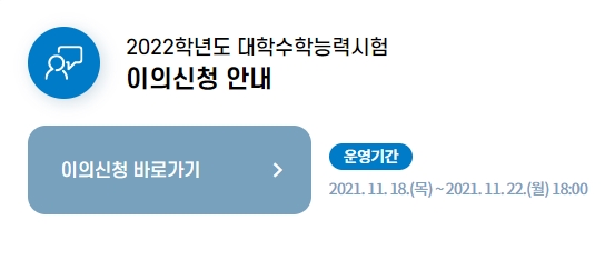 이번 2022학년도 수능 이의신청은 오늘부터 5일간 진행되게 됩니다 기간 놓치지 마시고 이의신청해주세요.